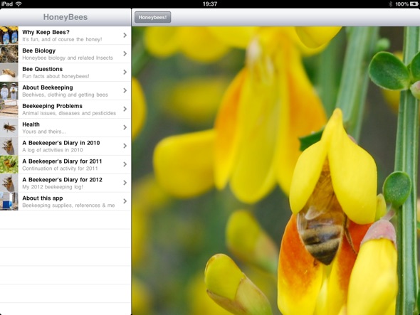 Using beautiful photographs, you will experience how bees live, and how they work together to raise their young, take care of each other and collect pollen and make honey. The 'beekeeper's diary' section chronicles the work of the beekeeper as the hives are cared for. Updates to the app will include updates to the diary as the year progresses.