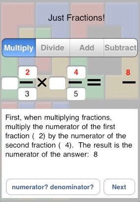 Note from "Dad": This application is indeed entirely the idea of my son. He is in 5'th grade and thought this program might be useful to aid similar age children in learning how to add, multiply, subtract and divide fractions. I purchased a beginning programming book, and showed him how to use the appropriate tools to program on the iPhone and iPod touch. He designed the layout and wrote many of the functions, as he stated. I assisted with some refinements and some of the underlying more difficult aspects of preparing a program.